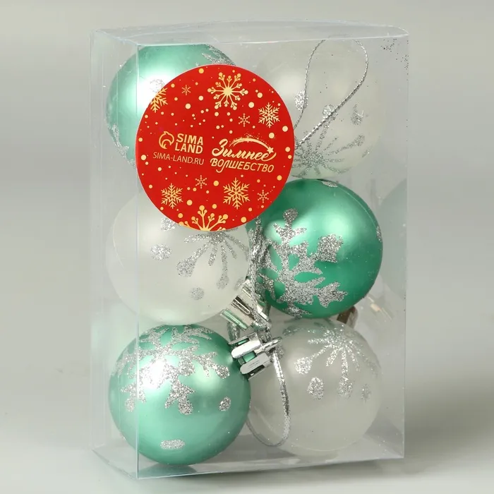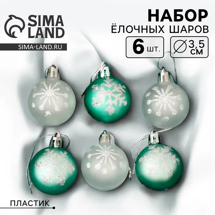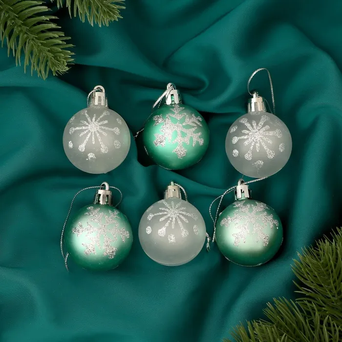 Ёлочные игрушки «Морозный день», шары новогодние, d=3.5 см, набор 6 шт., зелёный/белый — Характеристики