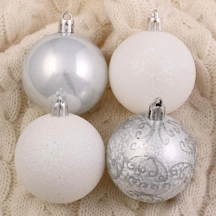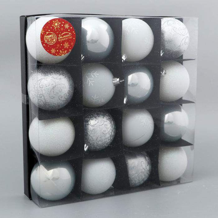Ёлочные игрушки «Морозный узор», шары новогодние, набор 16 шт., d=6 см, серебристый/белый — Характеристики