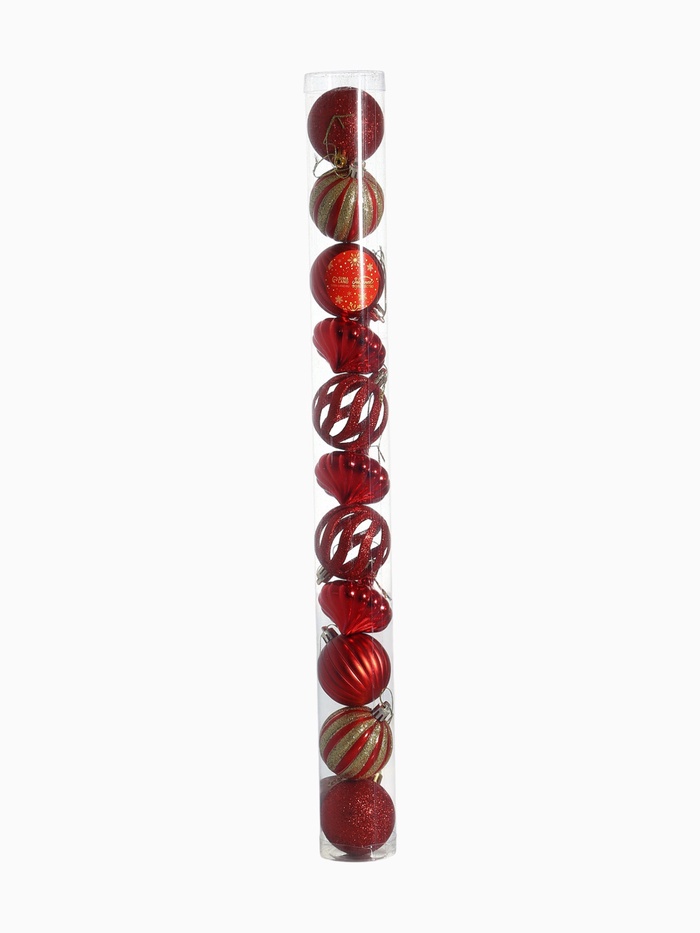 Декорируя ёлку этими шарами, вы наполняете пространство теплом и динамикой, подчёркивая важность семейных традиций и создавая настроение радости и единения. Красный цвет в новогоднем оформлении символизирует жизненную энергию и праздничную атмосферу, а сочетание различных фактур помогает избежать монотонности, добавляя глубину и выразительность. Лёгкость и практичность материалов делают процесс украшения комфортным и приятным, позволяя сосредоточиться на создании праздничного настроения и наслаждении моментом. Такой набор станет не только украшением интерьера, но и частью вашей семейной истории, возвращаясь из года в год и сохраняя атмосферу волшебства и уюта.