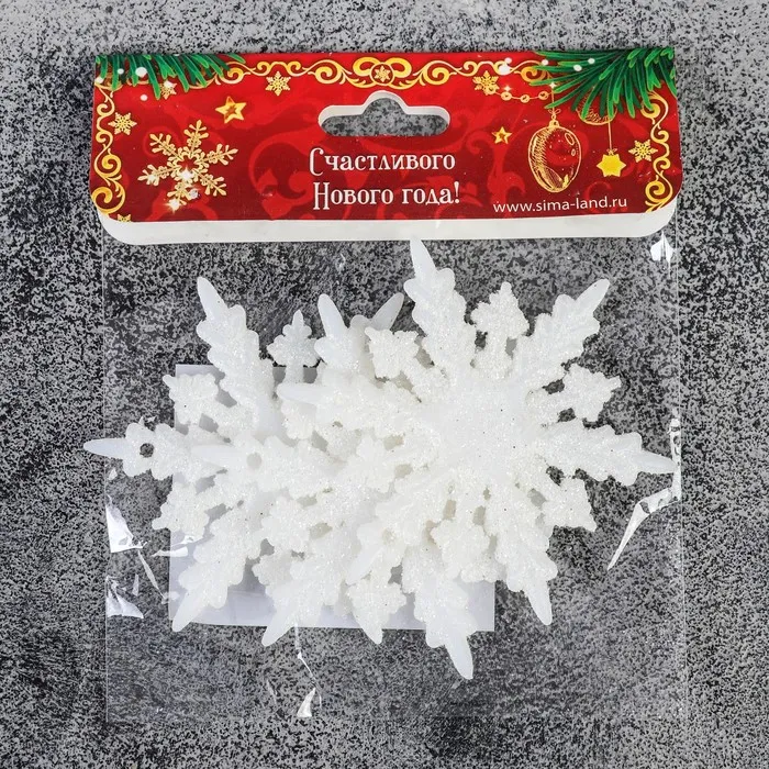 Ёлочные игрушки набор 3 шт. «Зимнее волшебство. Снежинка - морозный блеск» пластик, d-6 см, белый