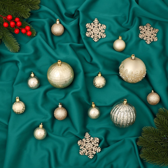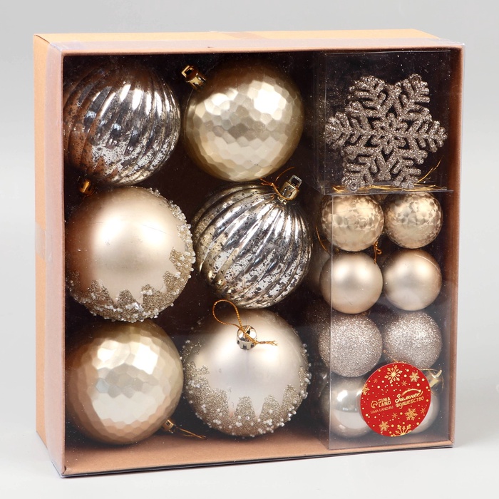 Ёлочные игрушки, набор 30 шт., «Торжество», d=7 и 3.5 см, снежинка-6.5 см, МИКС — Характеристики