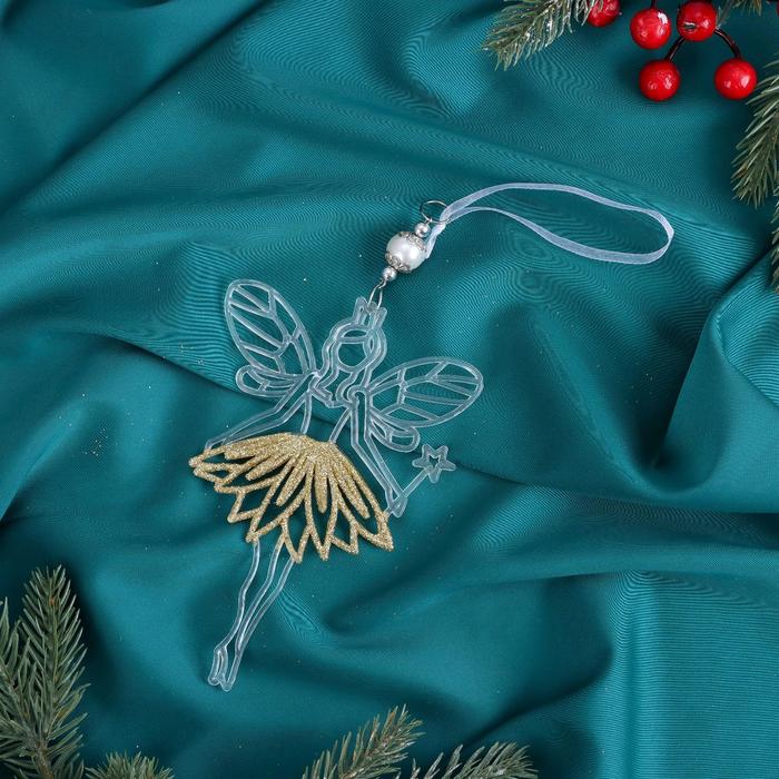Ёлочная игрушка «Зимнее волшебство. Дюймовочка юбка блеск» пластик, 9.5×14.5 см, прозрачно-золотой