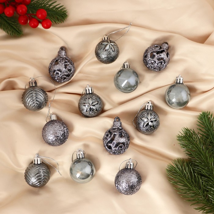 Ёлочные игрушки «Мелодия», шары новогодние, d=4 см, набор 30 шт., орнамент, серый