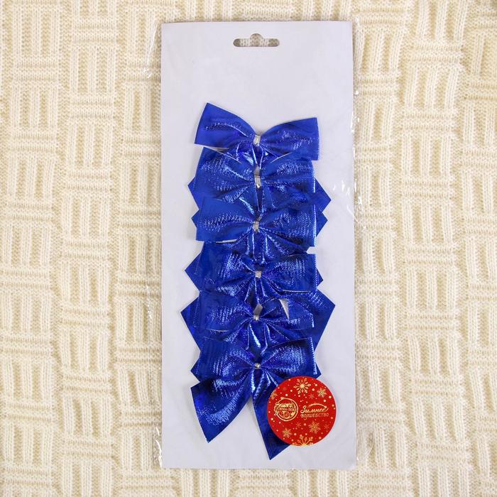 Ёлочные игрушки набор 6 шт. «Зимнее волшебство. Бантик неон» пластик, 8х7 см, синий