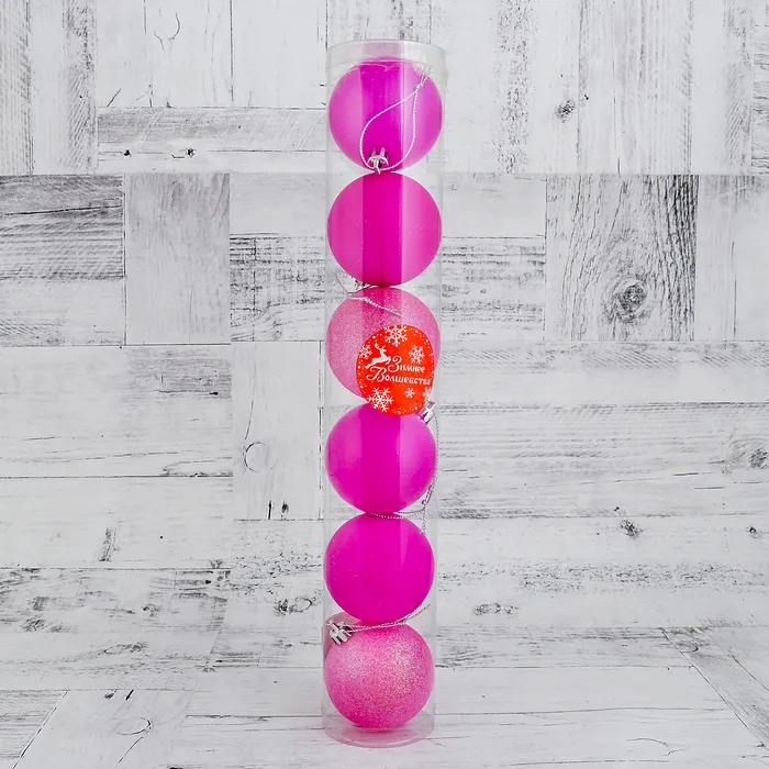 Ёлочные игрушки «Неон», шары новогодние, набор 6 шт., d=6 см, розовый — Характеристики