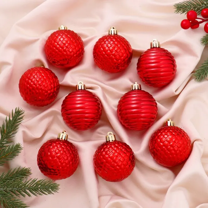 Ёлочные игрушки «Нерея», шары новогодние, d=6 см, набор 9 шт., красный — Характеристики