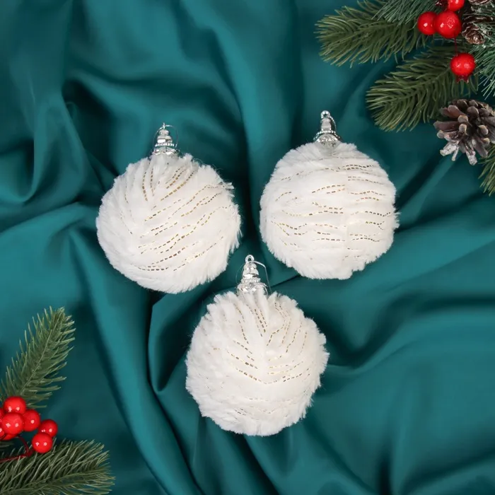 Ёлочные игрушки «Нежность», шары новогодние, d=8 см, набор 3 шт., полосы, белый — Характеристики