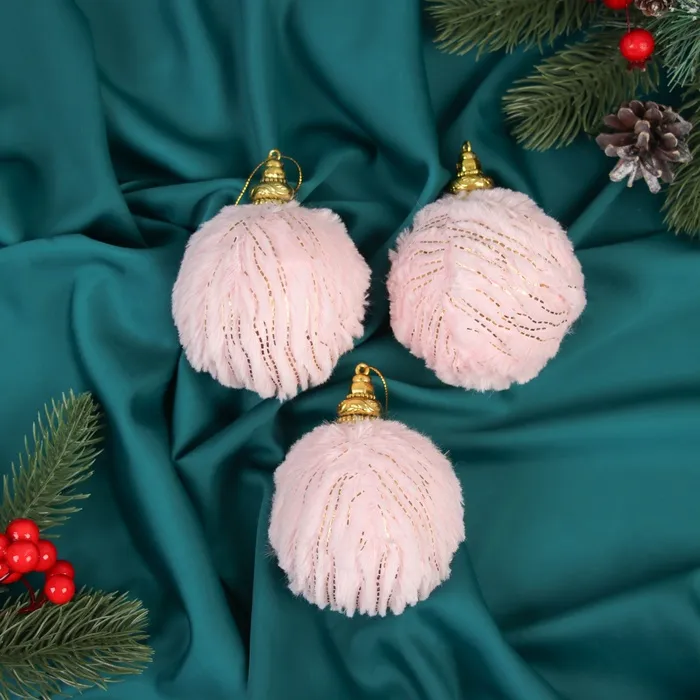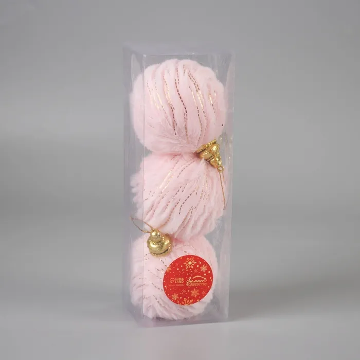 Эти украшения подойдут тем, кто хочет добавить ёлке не только цвет, но и эмоции. Розовые полосы задают ритм декору, оставаясь при этом деликатным акцентом. Комбинация пластика и текстиля делает каждую игрушку уникальной на ощупь и визуально. Это практичное и стильное решение для тех, кто любит встречать Новый год с теплом и заботой в деталях.