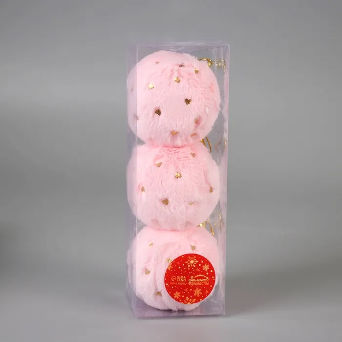 Ёлочные игрушки «Нежность», шары новогодние, d=8 см, набор 3 шт., сердца, розовый — Характеристики