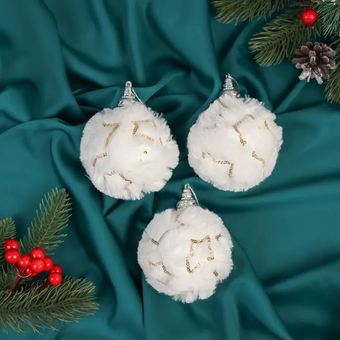 Ёлочные игрушки «Нежность», шары новогодние, d=8 см, набор 3 шт., звезда, белый — Характеристики