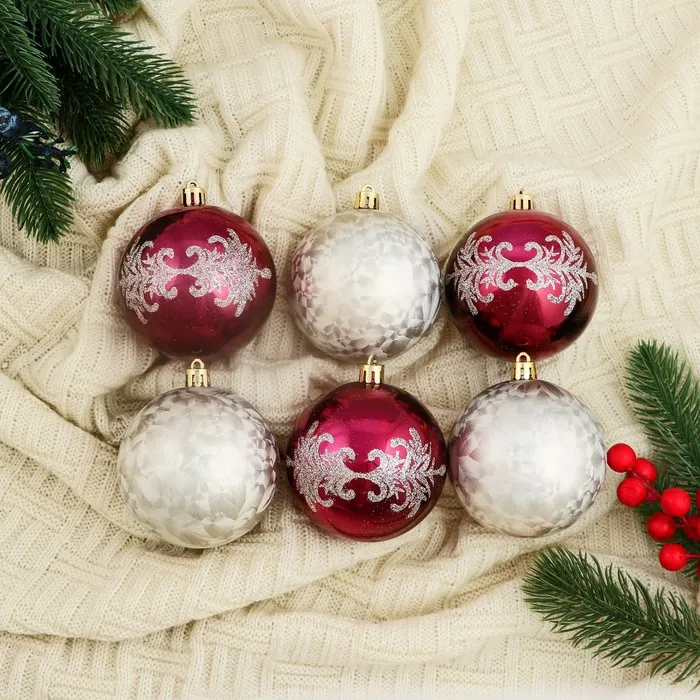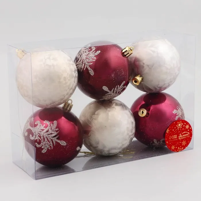 Ёлочные игрушки «Ночка», шары новогодние, d=8 см, набор 6 шт., элитный узор, бордовый/золото