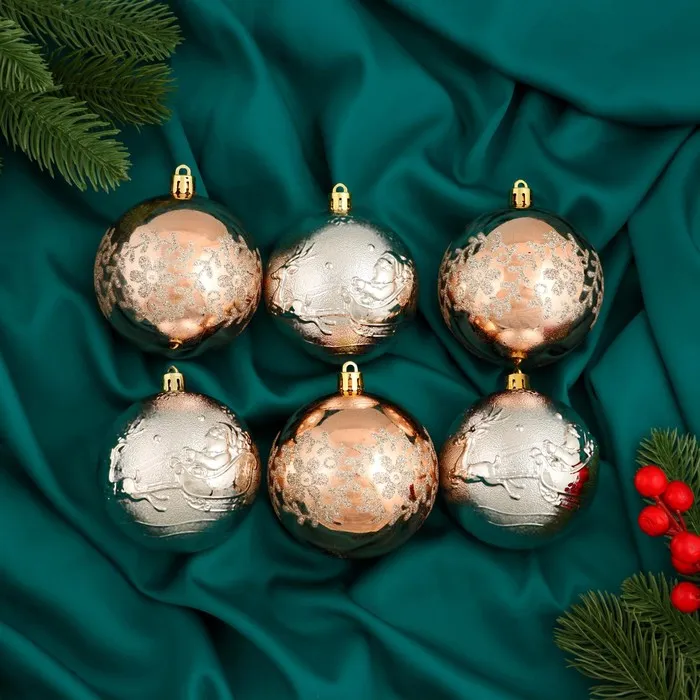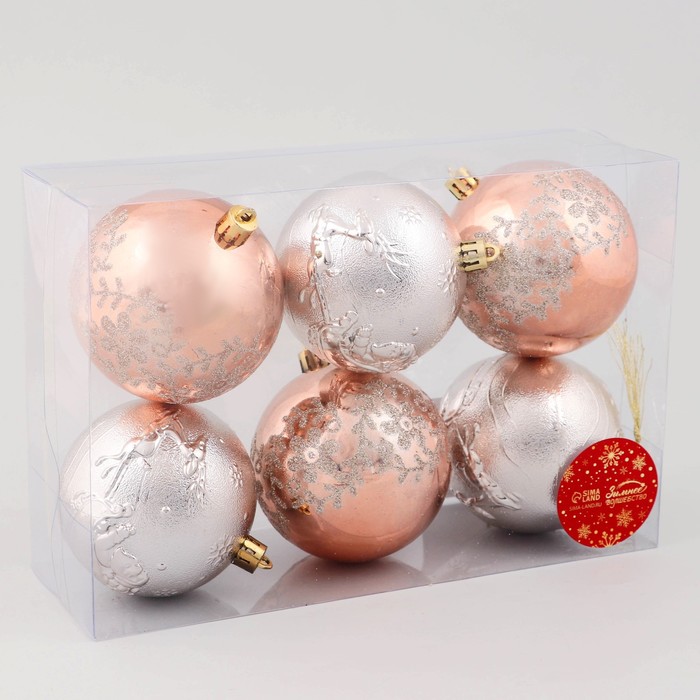 Ёлочные игрушки «Ночка», шары новогодние, d=8 см, набор 6 шт., цветы люкс, золотистый — Характеристики