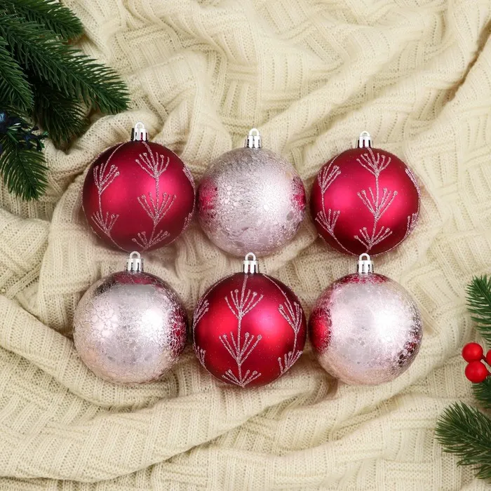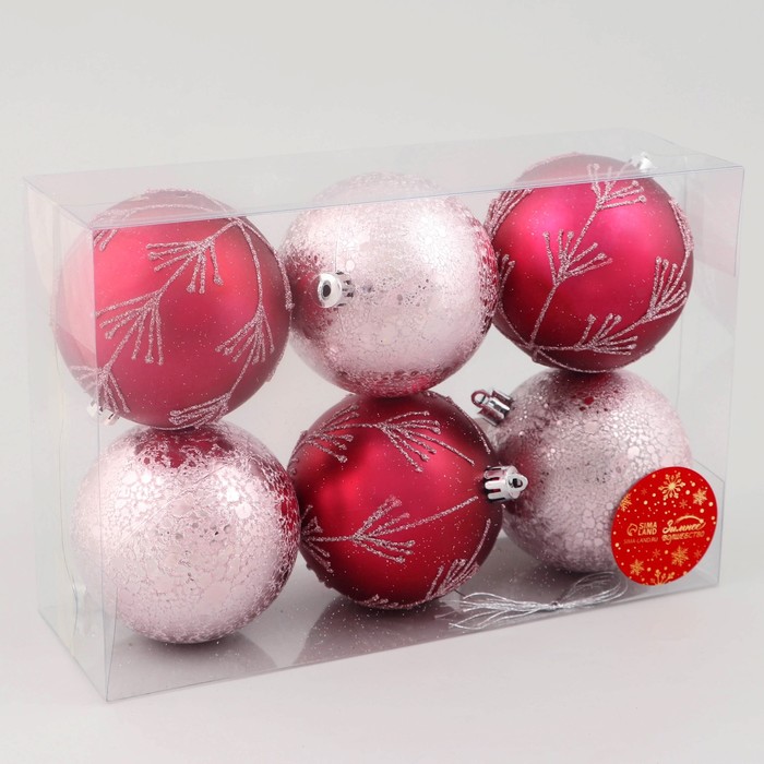 Ёлочные игрушки «Ночка», шары новогодние, d=8 см, набор 6 шт., веточки, красный розовый — Характеристики