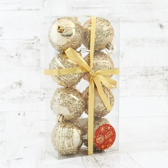 Ёлочные игрушки «Ночная вьюга», пластиковые, набор 8 шт., d=6 см, золотистый — Характеристики