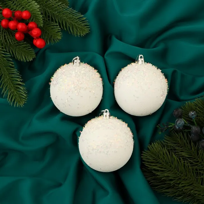 Белые новогодние шары с перламутровым эффектом — это изысканное украшение для стильного праздничного интерьера. Набор из 3 пластиковых игрушек диаметром 8 см подойдёт как для классической ёлки, так и для современного скандинавского или датского декора. Такие шары добавляют пространству света и текстуры, не перегружая его лишними деталями.