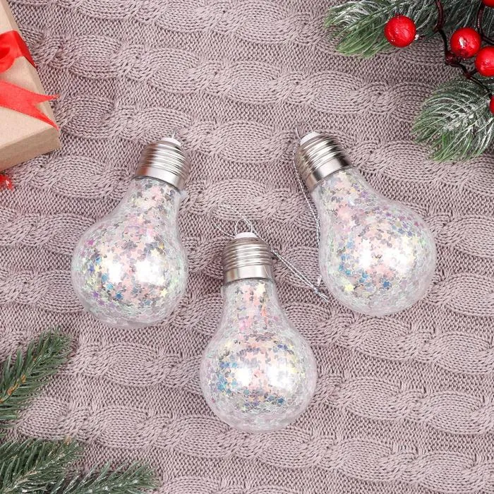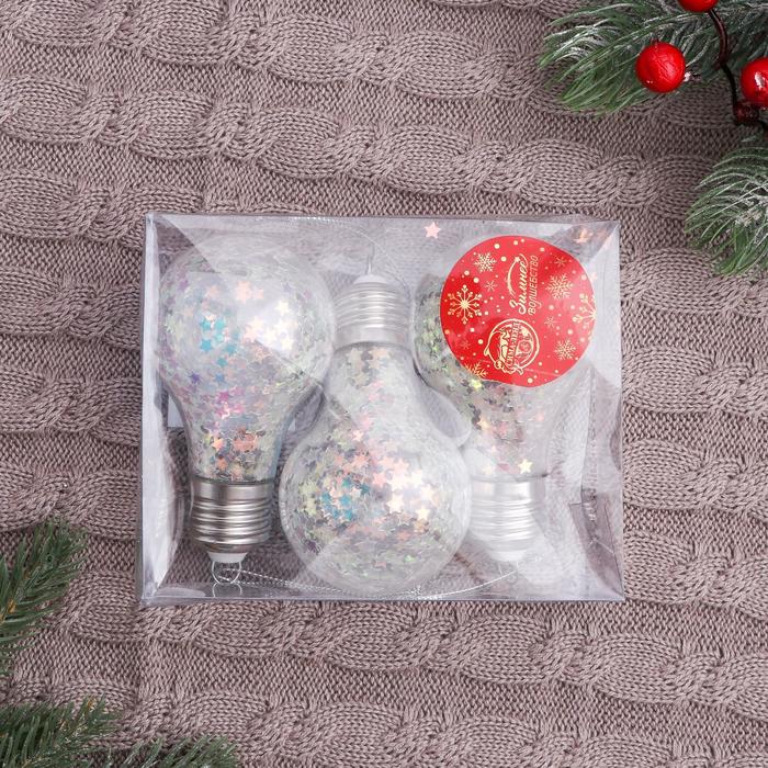 Ёлочные игрушки «Новогодние фантазии», набор 3 шт., лампочки, 6×7 см, прозрачный — Характеристики