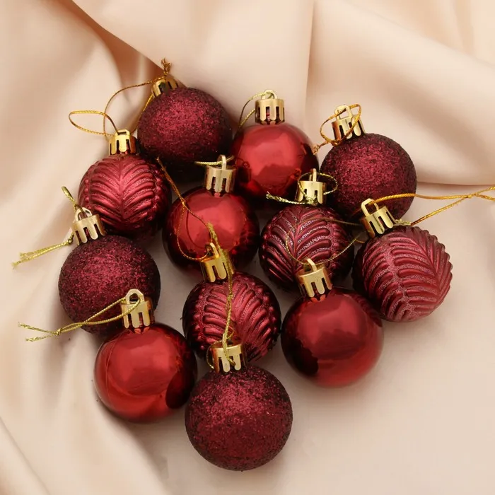 Новогодние шары бордового цвета, 4 см в диаметре, набор из 12 штук — это элегантный и сдержанный акцент для праздничной ёлки. Глубокий оттенок создаёт ощущение уюта и зимнего тепла, подходя как для классического, так и для современного оформления интерьера.