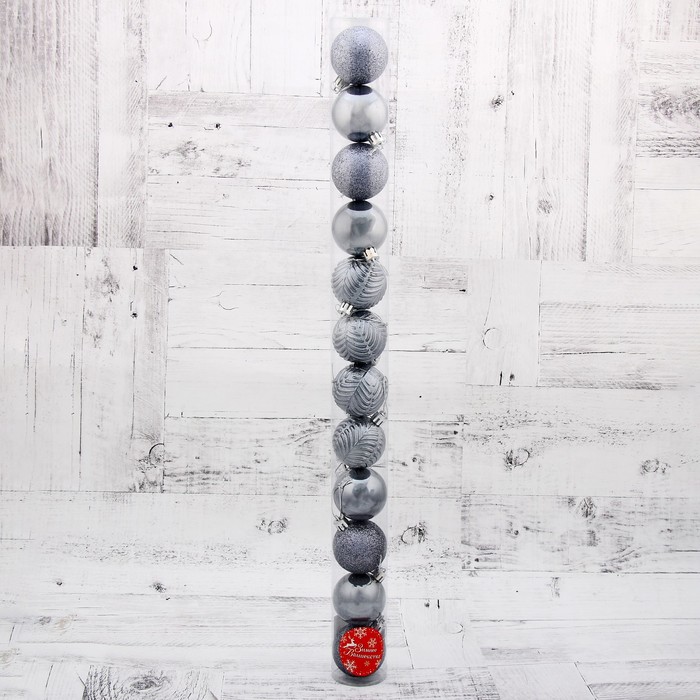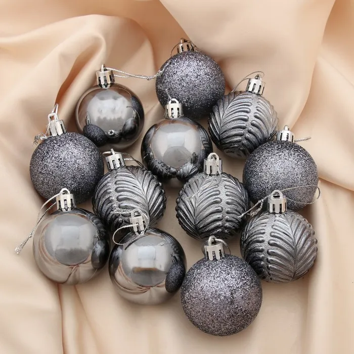 Ёлочные игрушки «Новогодние ветви», шары новогодние, набор 12 шт., d=5 см, серый — Характеристики