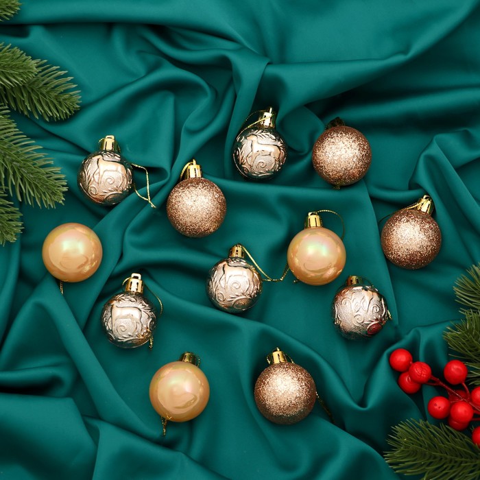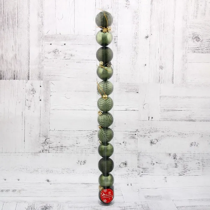 Новогодние шары «Новогодние ветви» — это базовый элемент праздничного декора для тех, кто любит уют и порядок в оформлении ёлки. Зелёный цвет и матовая поверхность создают ощущение зимней свежести, а 12 пластиковых игрушек диаметром 5 см позволяют полностью преобразить ёлку или дополнить уже существующий стиль в духе новогоднего барокко, датского минимализма, скандинавской простоты или фьюжн.