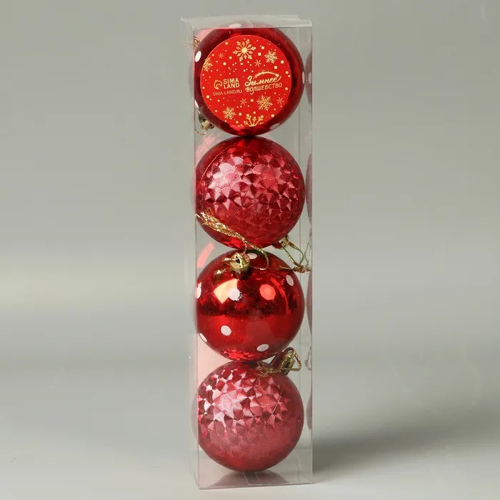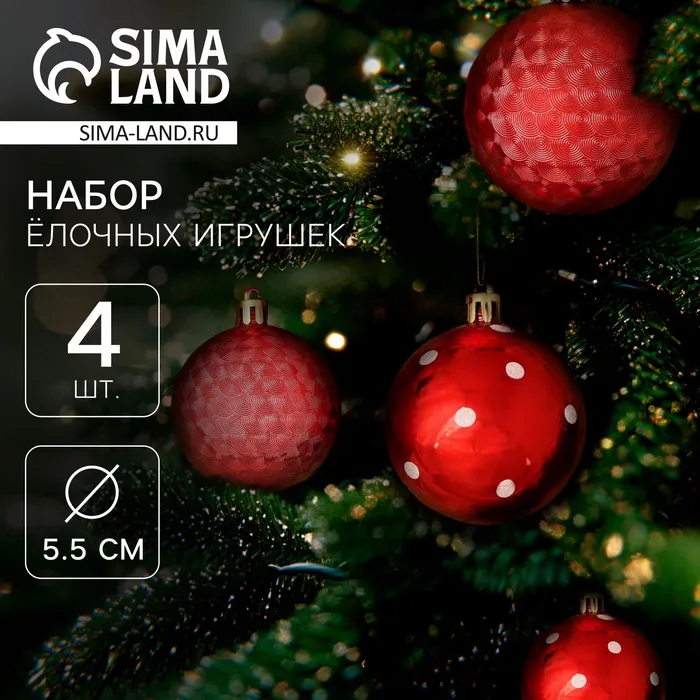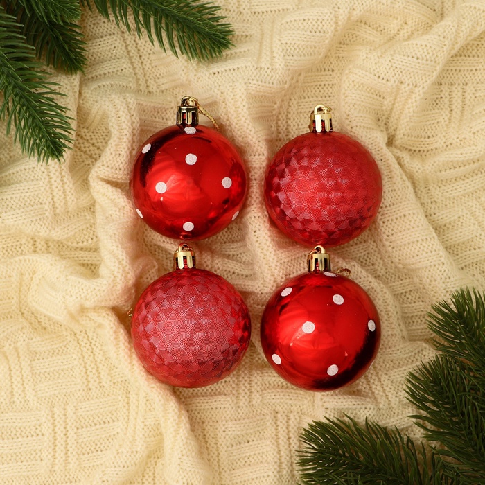 Ёлочные игрушки «Новогодние забавы», шары новогодние, d=5.5 см, набор 4 шт., горошек, красный — Характеристики
