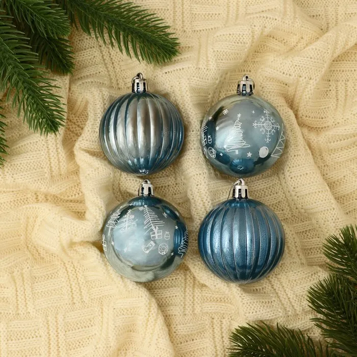 Ёлочные игрушки «Новогодние забавы», шары новогодние, d=5.5 см, набор 4 шт., полосы, голубой — Характеристики