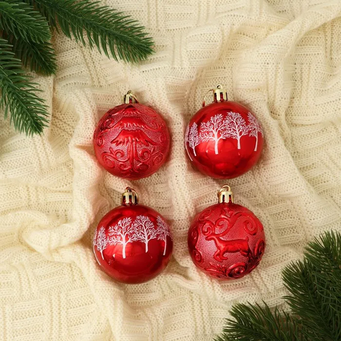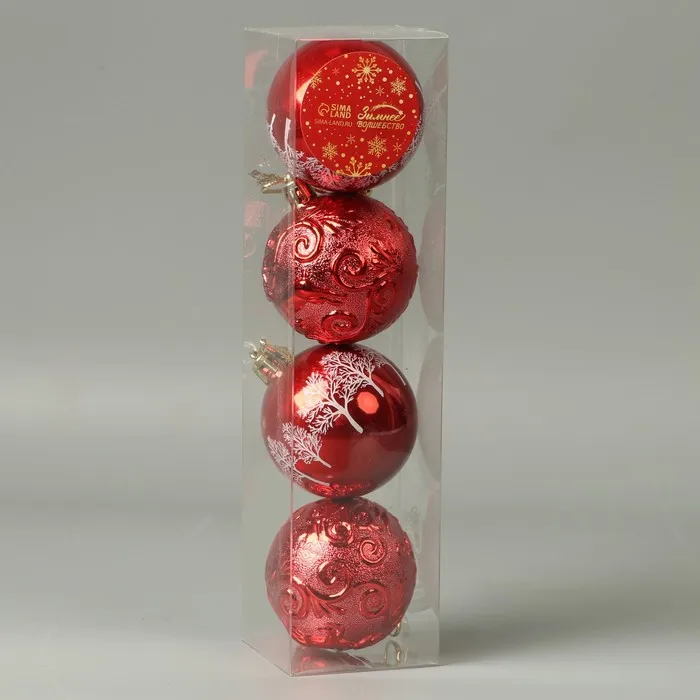 Ёлочные игрушки «Новогодние забавы», шары новогодние, d=5.5 см, набор 4 шт., завитки, красный — Характеристики