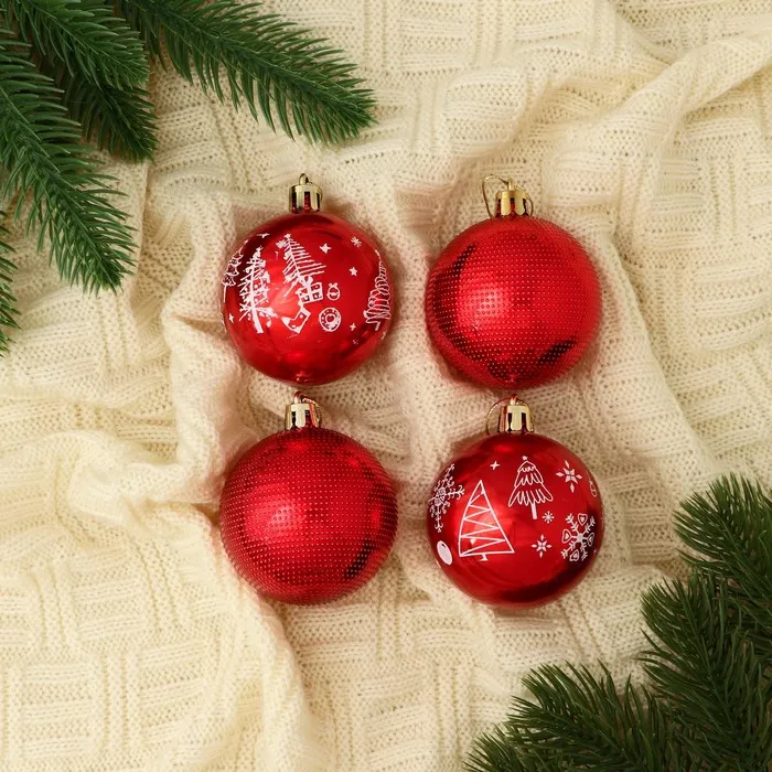 Ёлочные игрушки «Новогодние забавы», снежинки, набор 8 шт., d=5 см, красный — Характеристики