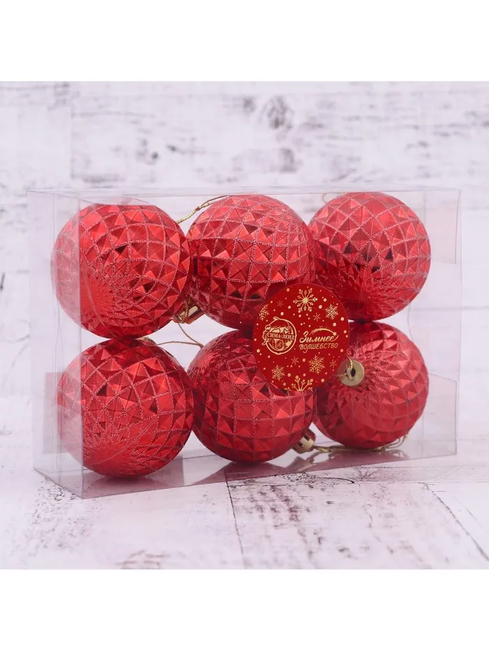 Новогодние шары насыщенного красного цвета — это стильный и универсальный элемент для украшения ёлки к Новому году. Шесть пластиковых игрушек диаметром 6 см станут заметным акцентом в декоре в стиле новогоднего барокко, скандинавского минимализма или фьюжн. Однотонный дизайн и яркий оттенок делают их идеальным решением для создания тёплой и праздничной атмосферы.