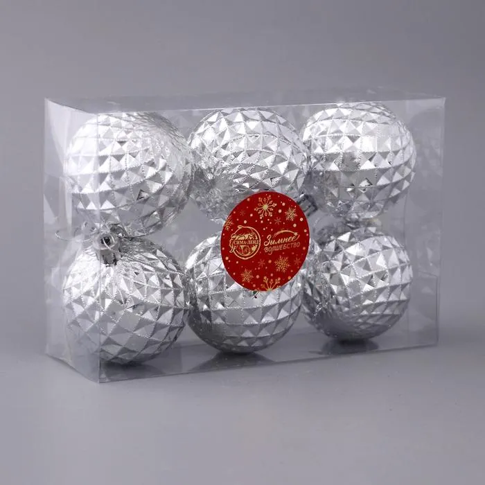 Ёлочные игрушки «Объёмная сеточка», шары новогодние, d=6 см, набор 6 шт., серебро — Характеристики