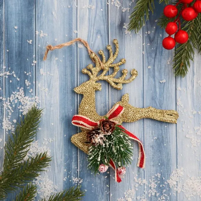 Ёлочные игрушки «Олень с шишками и лентой» 13×16 см, золотистый