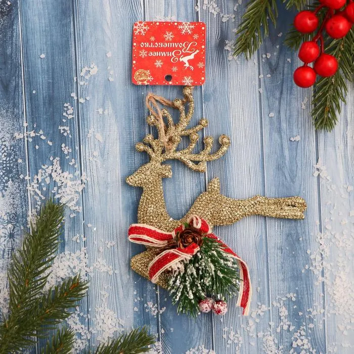 Ёлочные игрушки «Олень с шишками и лентой» 13×16 см, золотистый — Характеристики