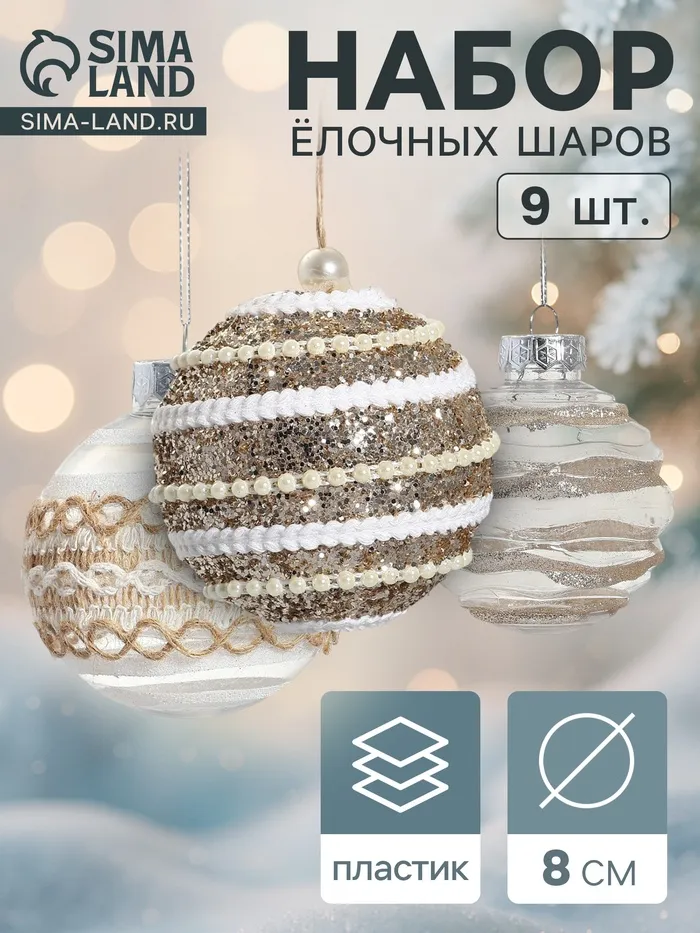 Ёлочные игрушки «Орсон», шары новогодние, d=8 см, 9 шт., изысканность — Характеристики