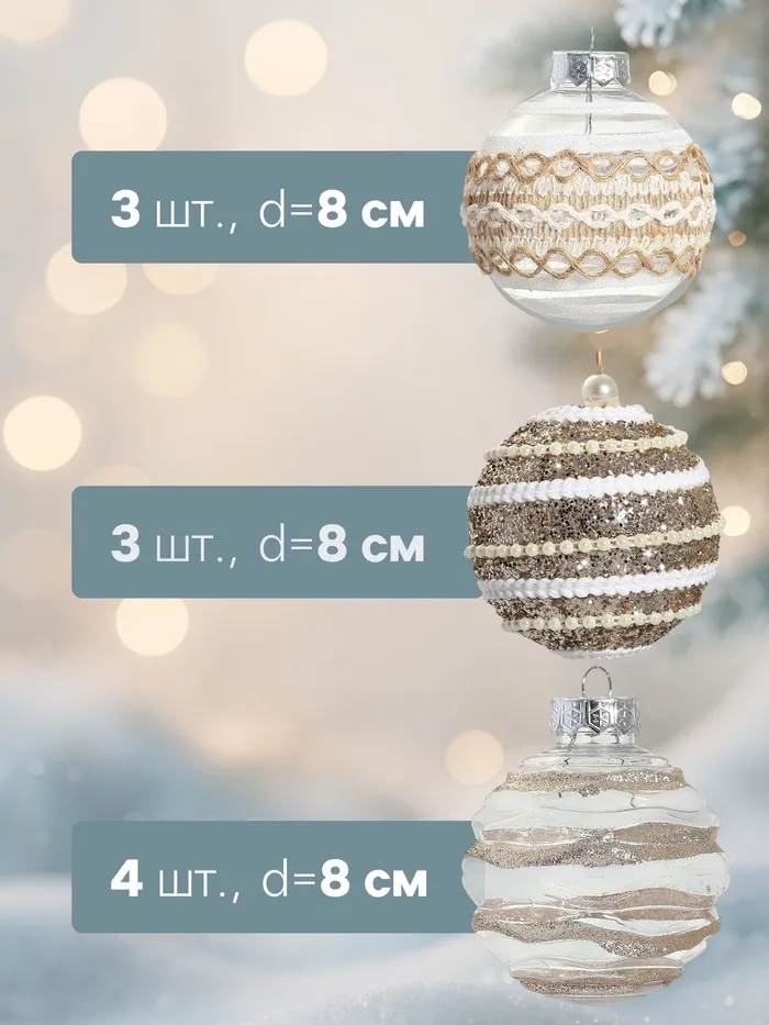 - Диаметр 8 см гармонично смотрится на ёлках разных размеров.