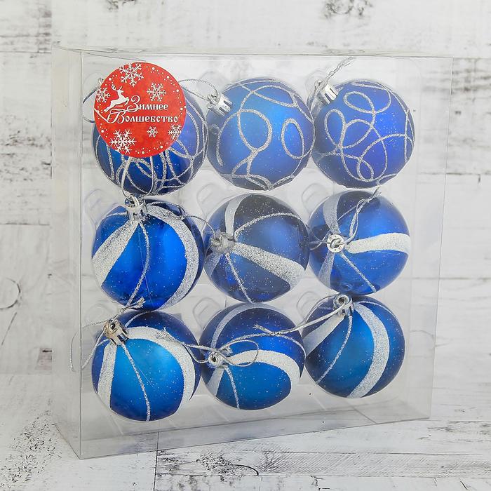 Ёлочные игрушки «Паулина», шары новогодние, набор 9 шт., d=6 см, синий — Характеристики