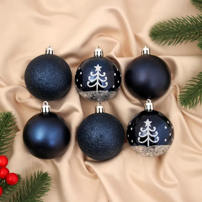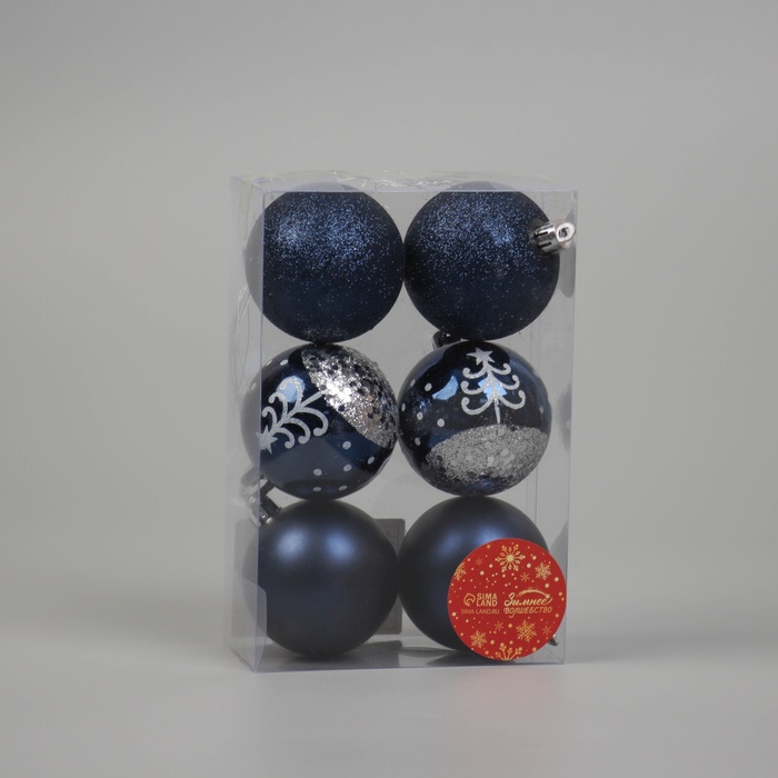 Ёлочные игрушки «Перелив», ёлочка, шары новогодние, набор d=6 см, 6 шт., синий — Характеристики