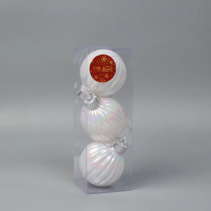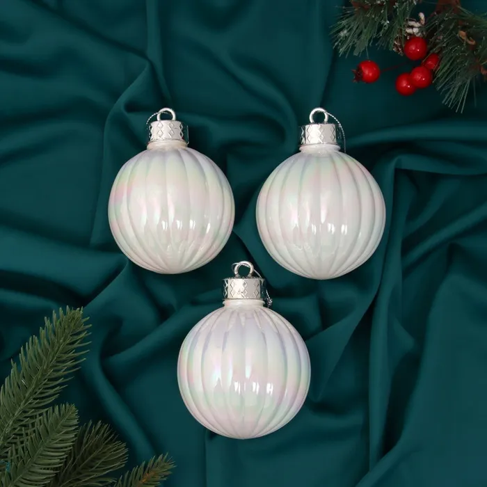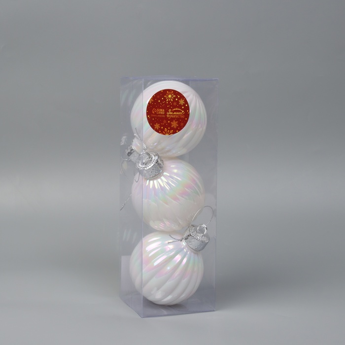 Ёлочные игрушки «Перелив», шары новогодние, набор d=8 см, 3 шт., полоски, белый перламутр — Характеристики