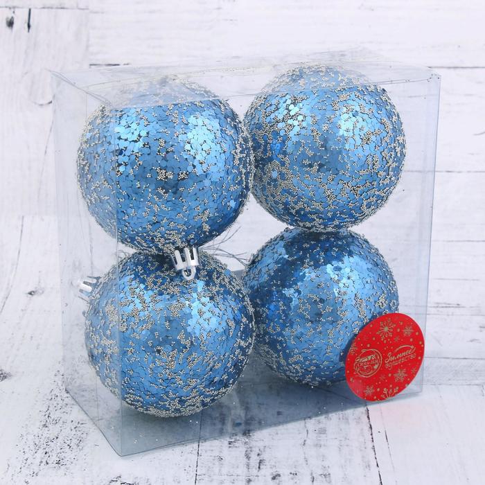 Ёлочные игрушки «Переливы», шары новогодние, набор 4 шт., d=8 см, синий — Характеристики