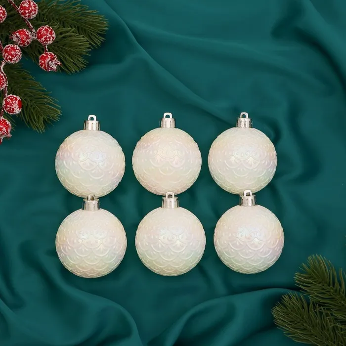 Ёлочные игрушки «Перл», шары новогодние, d=6 см, набор 6 шт., блеск, белый — Характеристики