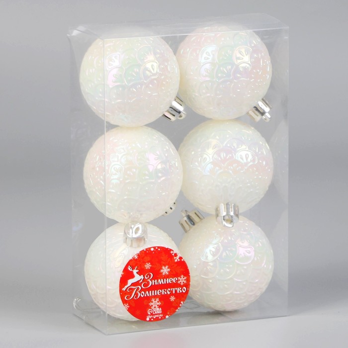 Ёлочные игрушки «Перл», шары новогодние, d=6 см, набор 6 шт., блеск, белый