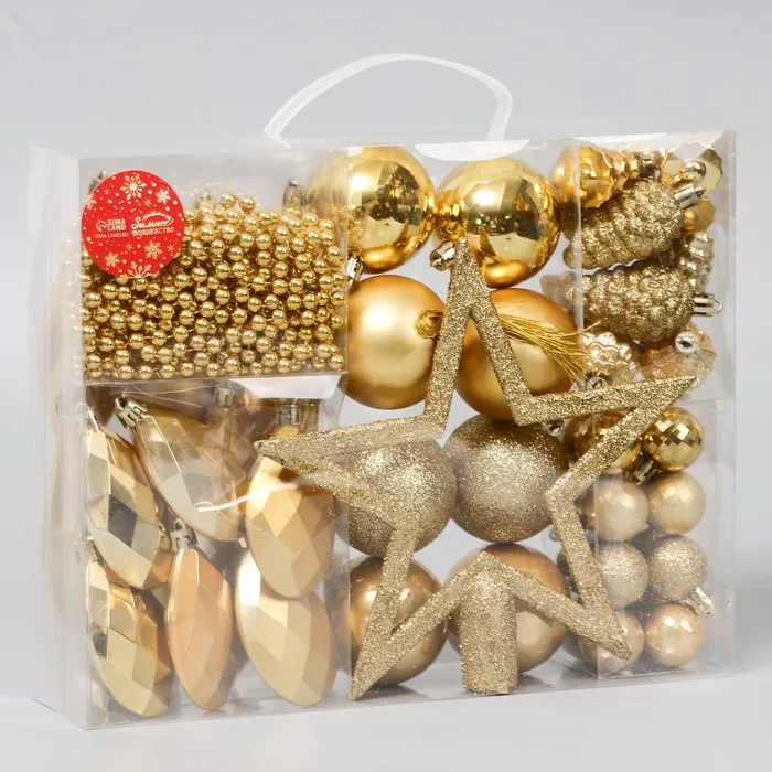 Ёлочные игрушки, пластик, набор 50 шт "Андромеда" золото — Характеристики
