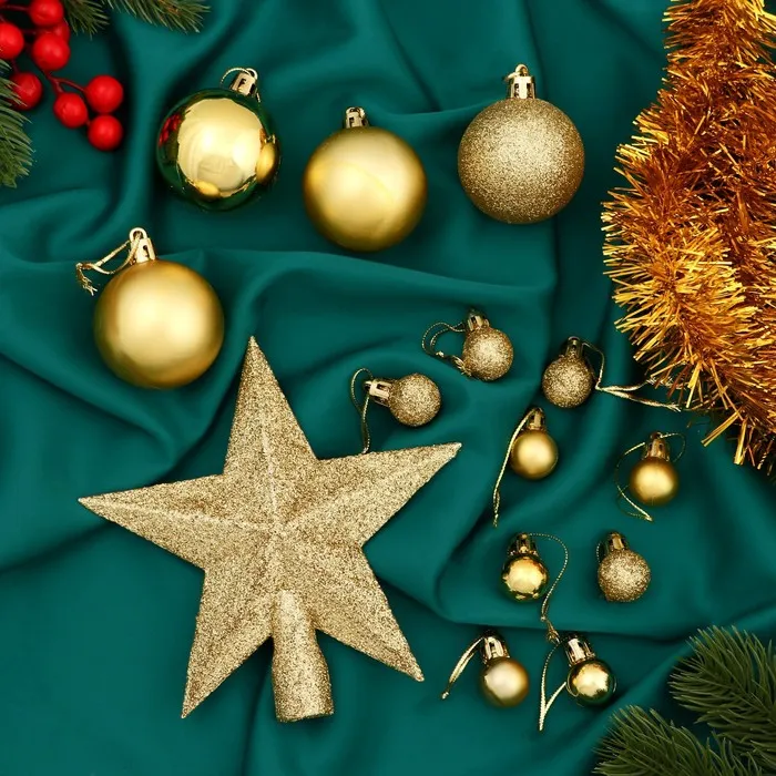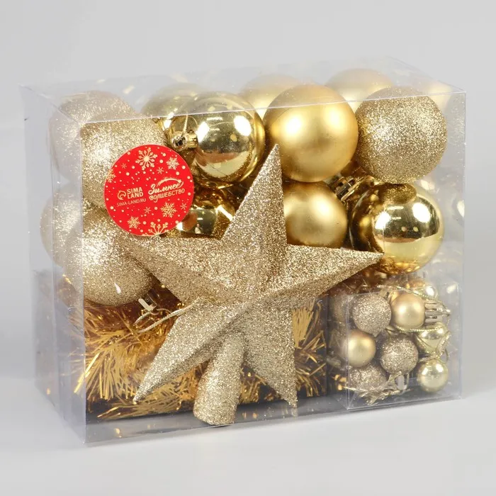 Ёлочные игрушки, пластик, набор 54 шт "Звёздное небо" мишура 2,5 см, золото — Характеристики