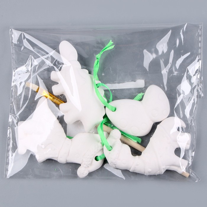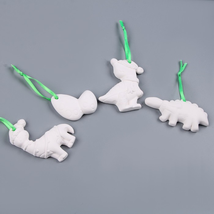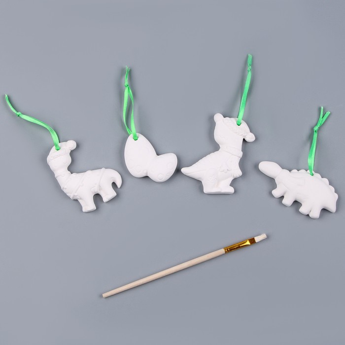 Ёлочные игрушки под раскраску 4 шт «Динозавры» с подвесом, кисть — Характеристики