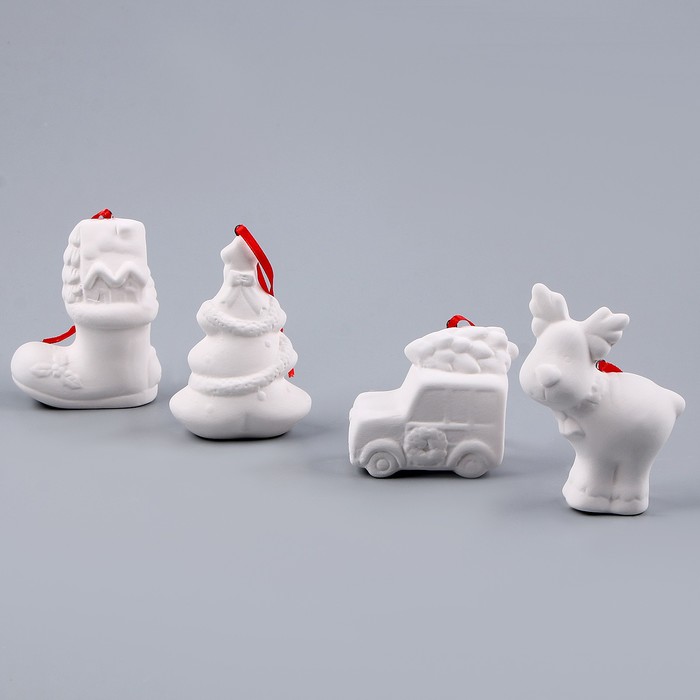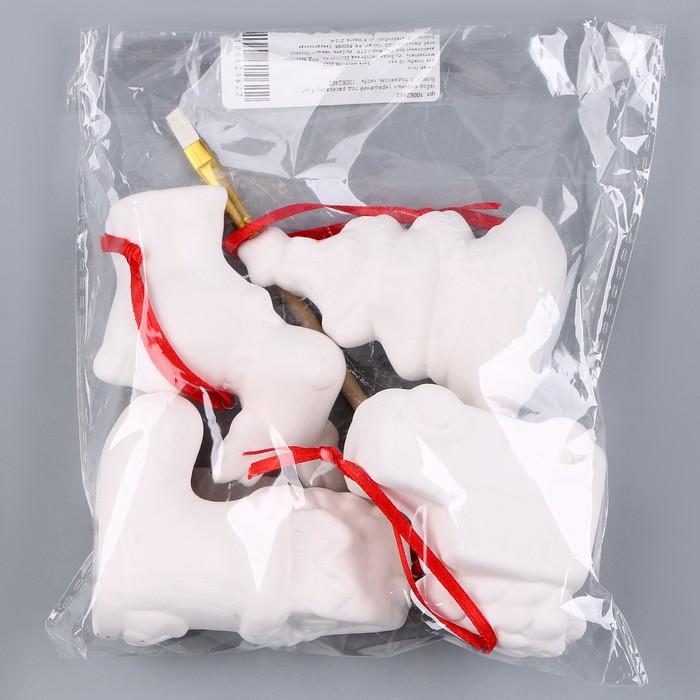 Ёлочные игрушки под раскраску «Блеск», 4 шт., с подвесом, кисть — Характеристики