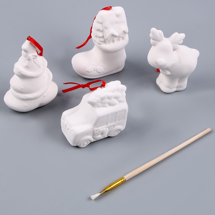 Ёлочные игрушки под раскраску «Блеск», 4 шт., с подвесом, кисть