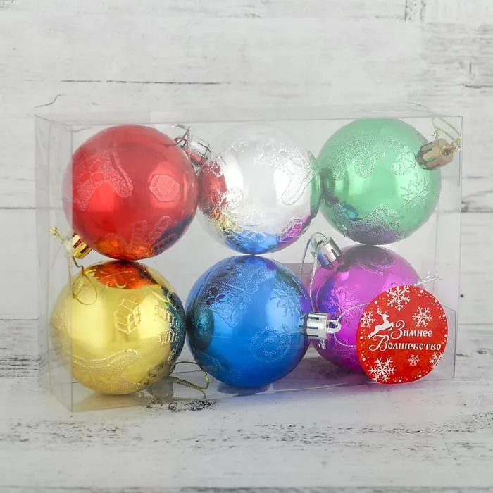 Ёлочные игрушки «Подарки и сапожки», шары новогодние, d=6 см, набор 6 шт., МИКС — Характеристики