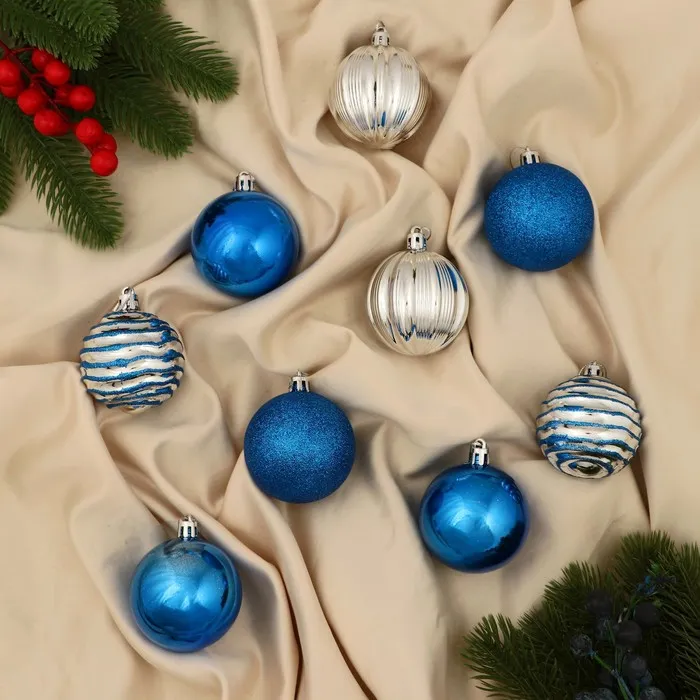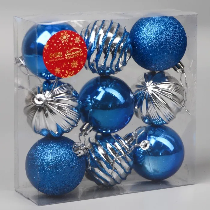 Ёлочные игрушки «Полночь», шары новогодние, d=5.5 см, 9 шт., полоски, синий серебро — Характеристики