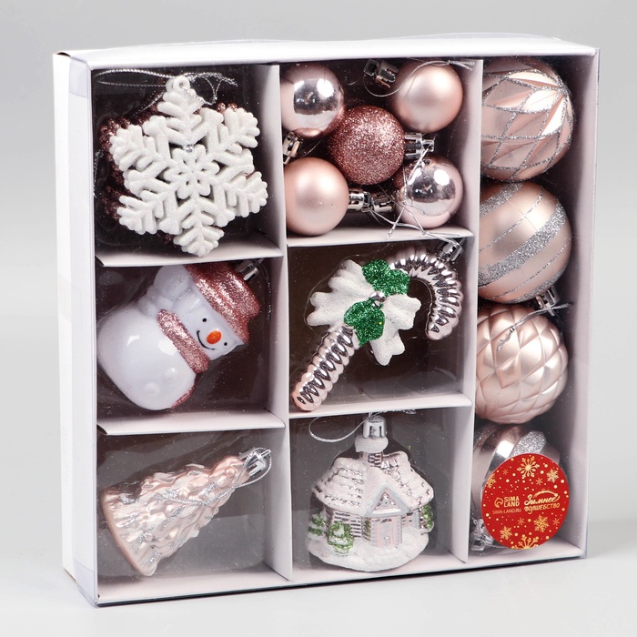 Ёлочные игрушки «Праздничные», новогодние, набор 20 шт., бежевый/белый — Характеристики