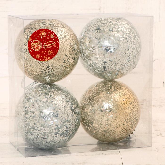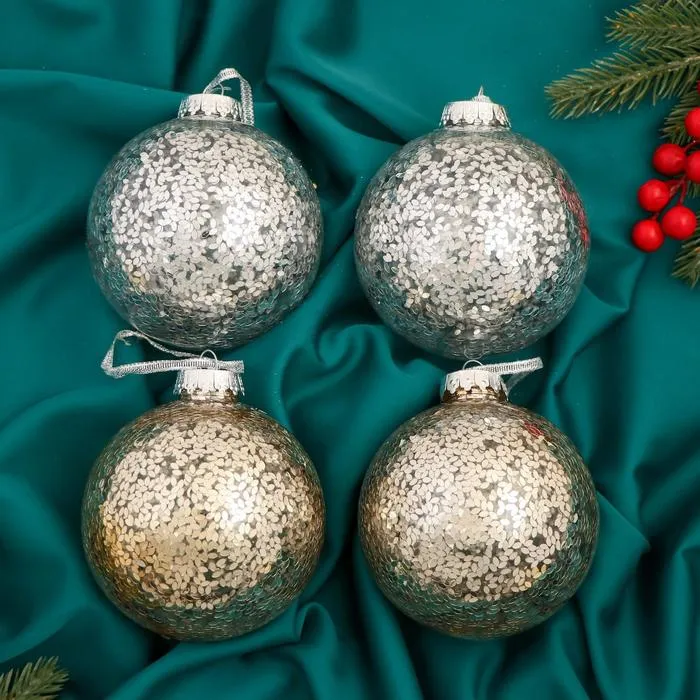 Ёлочные игрушки «Праздничный блеск», шары новогодние, d=10 см, набор 4 шт., серебро/золото — Характеристики