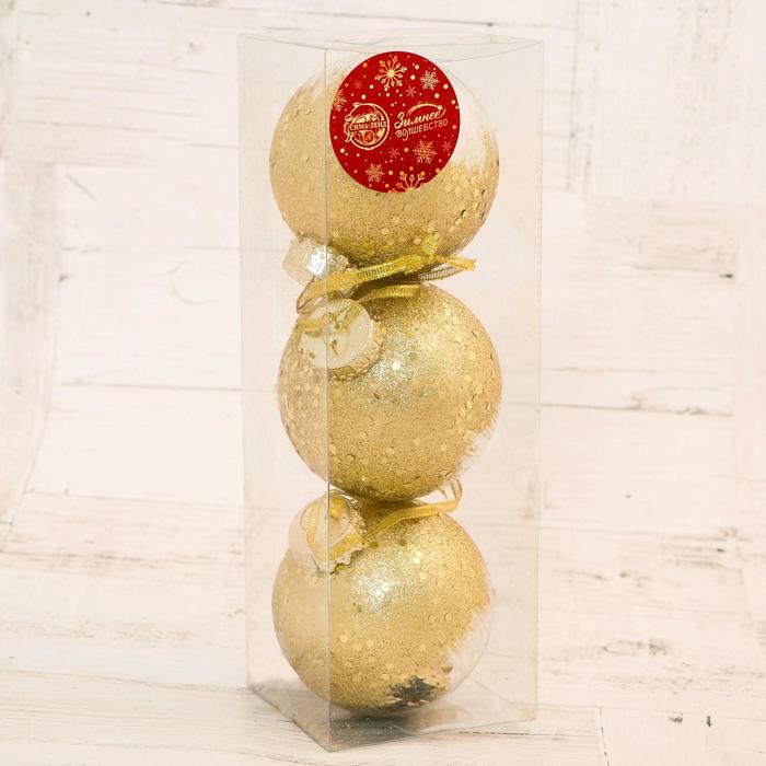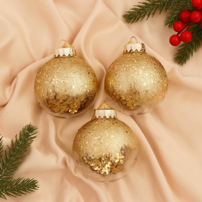 Ёлочные игрушки «Праздничный блеск», шары новогодние, d=8 см, 3 шт., золотистый — Характеристики