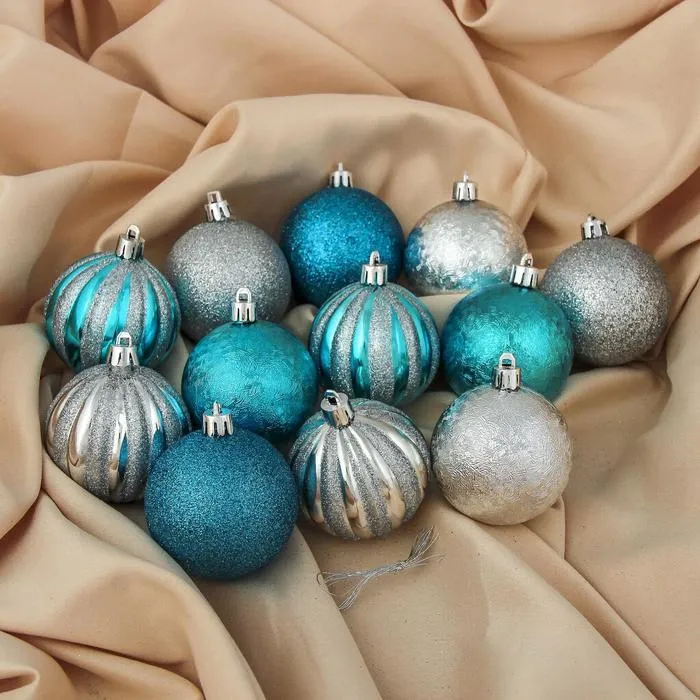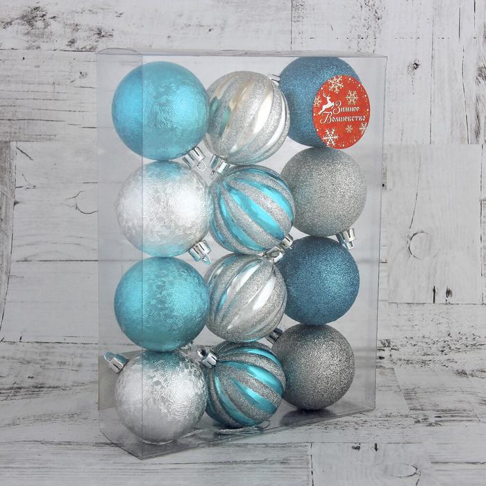 Ёлочные игрушки «Праздничный салют», шары новогодние, d=6 см, набор 12 шт., серебристо-синий — Характеристики